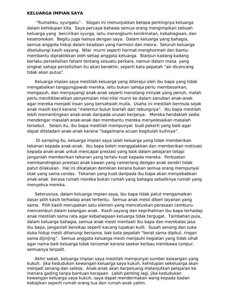 Tiket bot laju ke pulausehala2hala 5. Saya Juga Ingin Memiliki Keluarga Yang Bahagia Keluarga Impian Saya Contoh Karangan Sekolah Saya Contoh Karangan Rumah Idaman Saya Contoh Caps Semenjak saya bertugas di ppd perak tengah pada tahun 2014. Di hadapan rumah saya pula ada banyak pokok bunga.